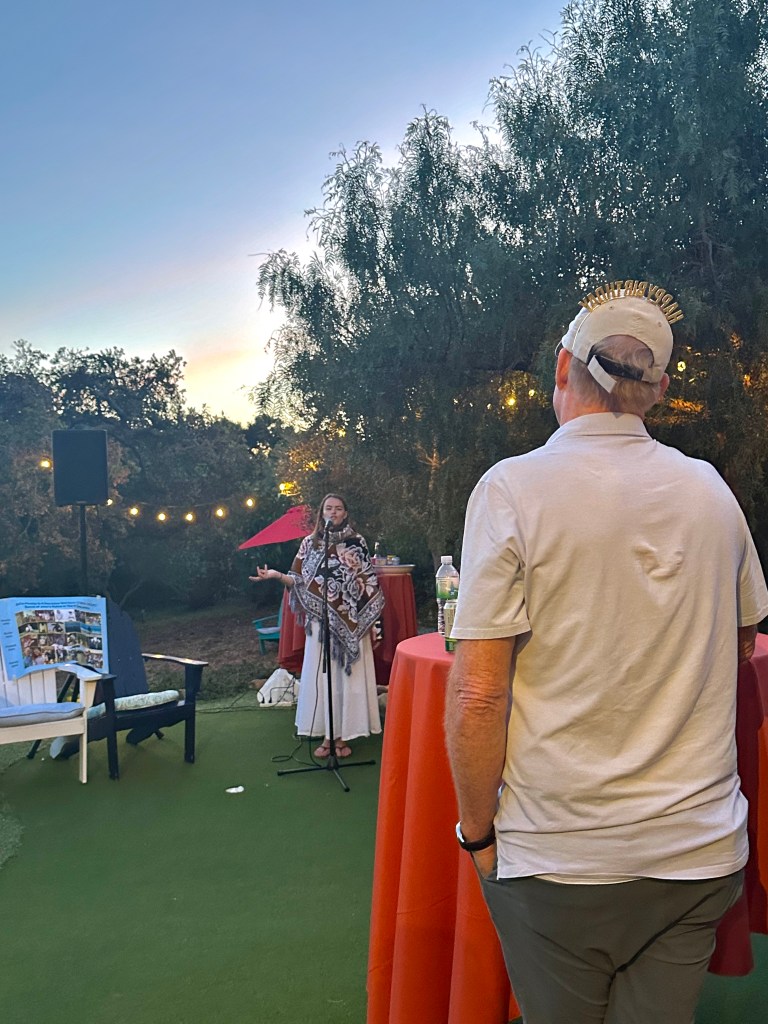 i walked away from the microphone and gave my dad a big hug only to turn around and see john henry and claire, in many ways my siblings, who’d showed up just in time to hear me speak and embrace me in a gigantic hug afterward. their dad had spoken just before i went up, and he told a story i recognized as the same one he told at my parents’ rehearsal dinner thirty years ago. firsthand proof–my dad’s friendships translated into mine. my siblinghood with c and jh is generational. annie took this beautiful photo of me speaking while my dad looks on. it’s such a special image; i can tell from his stance that he is moved, and proud.