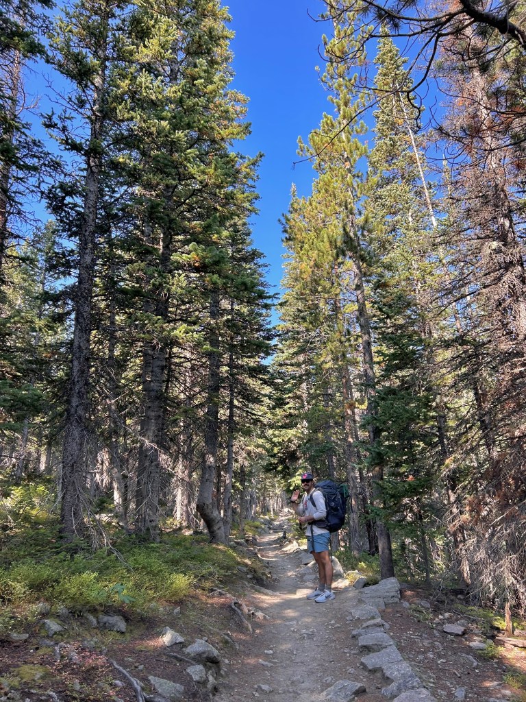 yours truly was a littleeeeee dramatic about the 543a wakeup this morning so naturally we pushed the alarm off until six. the parking lot at bear lake the day prior was full by 7a so our main goal was getting out of our campsite and into the parking lot as quickly as poss. we made it at about 658 with plenty of spaces to spare! in spite of a very comedic & very ~national park~ three car traffic jam this morning for…a few turkeys on the side of the road. wildlife is wildlife! the morning light was stunning and so well worth the early alarm. once we secured our spot we took our sweet time sprawling all of our gear out and stuffing our packs and brushing our teeth and eating breakfast. on trail by 9a!