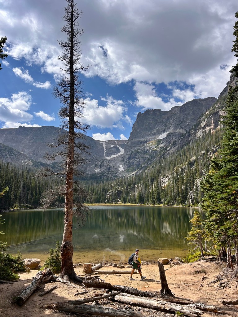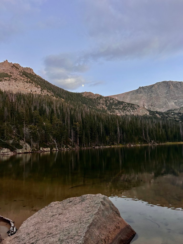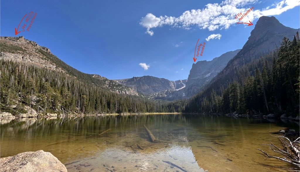 the morning passed quickly and we were back to the car by nine thirty! our feet and packs were lighter as we headed back to reality, passing not a single person on the trail until we got to the bear lake parking lot. we grabbed our camp chairs, some chips, and a beer to split and set up right on the edge of bear lake for a bit, having a couple hours to kill before estes park brewery opened. total mileage this morning was 2.3 miles.