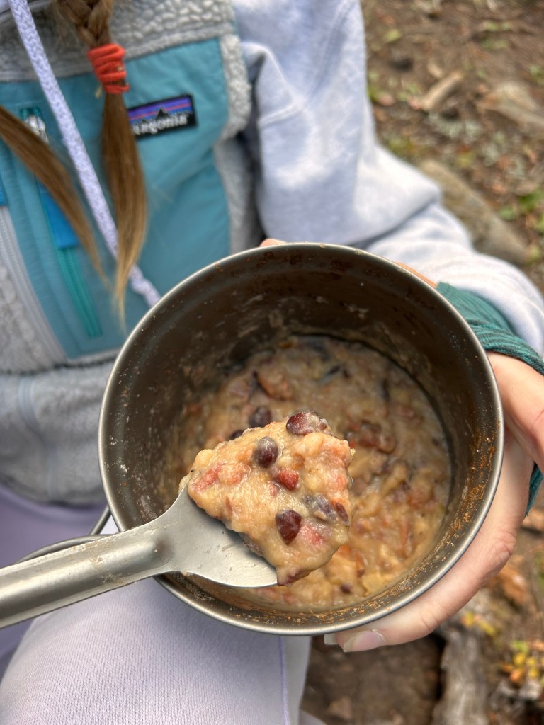 tonight’s dinner was hearty yet experimental. we brought dehydrated chili and instant mashed potatoes but had quite a small pot so we had to batch it in two. the first batch took maybe half an hour to get the chili just right, and we added far too many mashed potatoes and not enough water. it was nourishing but not quite right. the second batch we knocked out of the park, making kind of a thick chili-potato stew. we’ve been especially excited to share this recipe with our sweet friends cammie and ethan, Local Experts On Idahoan Instant Mashed Potatoes. it’s not going to look very appetizing, but we know cam and ethan at the very least will be impressed: