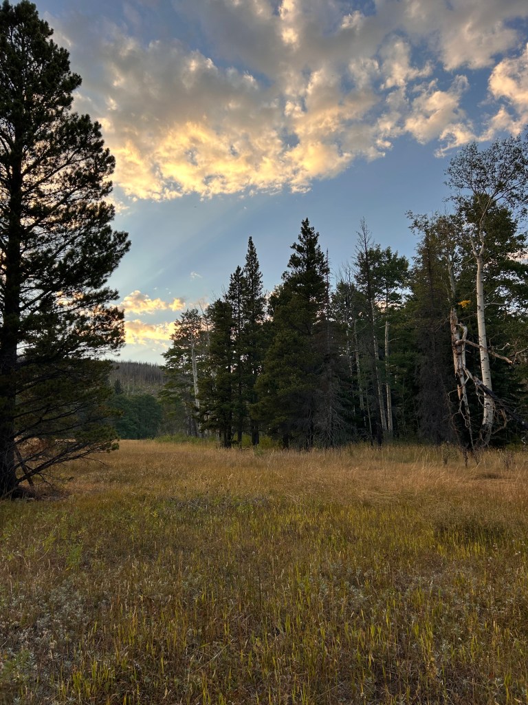 Without a doubt, the highlight of my day was the legions of baby aspens we traversed through. Their genesis stemmed from two fires that severely impacted the area, one in 2012, and another in 2020; in the wake of fire, aspens sprout prolifically, a fact readily available to us as we bore witness to their sheer abundance. This, of course, led me to googling “facts about aspens” once returning to the front-country, and I learned some marvelous things about a tree I had long since considered my Favorite. They are not only my favorite tree but the most widespread in all of North America, so obviously I selected well. Aspens sprouts originate as “suckers” (killer name) that are formed in their extensive underground root systems, and in a single acre of fire-impacted terrain, as many as 100,000 suckers can sprout. In this post-fire period, they dominate the forest growth game, taking advantage of plentiful sunlight and their rapid developmental tendencies to make magic. In an area aggressively marred by the fires of the past 15 years, their quintessential flutter enlisted great hope for woodland return, no matter the obstacles that stand in front of it. You may temporarily kill a forest, but created in the wake lies aspen suckers by the millions, just awaiting their chance to shine.